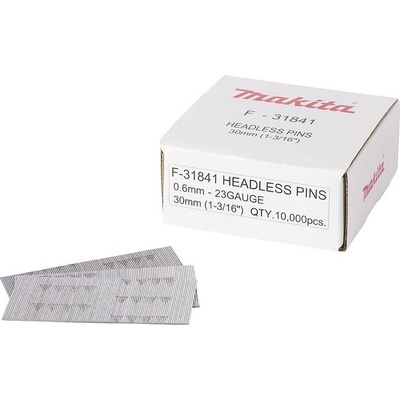 Hřebíky / pinky Makita 30mm F-31841 - Délka 30 mm - Kompatibilní s: AF353, DPT353RFJ, DPT353Z - Balení obsahuje 10000 ks