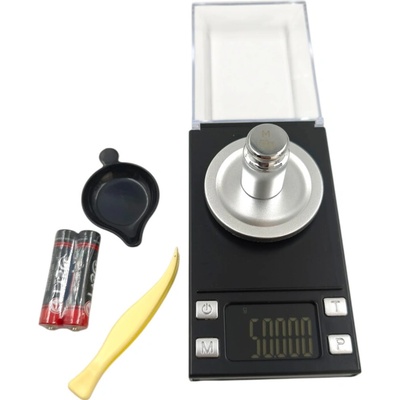 Černá digitální váha Milligram Scale s ultimátní přesností na tisicínu gramu a kapacitou 20 gramů. Včetně příslušenství.