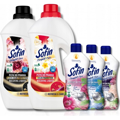 SOFIN Tekutý prací prostředek Color Black 1,5 l x 2 Parfém do pračky sušičky 250 ml x 3 mix 5 Kusů - Sofin Complete Care Tekutý prací prostředek na tmavé prádlo 1,5 l - Sofin...