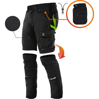 Pohodlí a odolnost do terénu — pracovní kalhoty, které snadno přejdou na kraťasy a udrží nářadí na dosah.