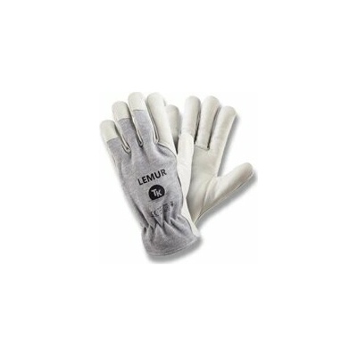 Pohodlné a měkké pracovní rukavice Lemur pro montážní práce. Dlaň, palec a konečky prstů z kozí kůže. Zadní strana je vyrobena z šedé hladké bavlny. Velikost 10.