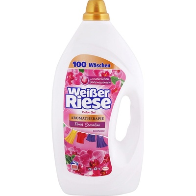 Popis Weisser Riese gel na praní:Weißer Riese barevný gel Aromaterapie je účinný prací gel, který silně působí proti jakýmkoli skvrnám a zároveň je šetrný k textilním vláknům....