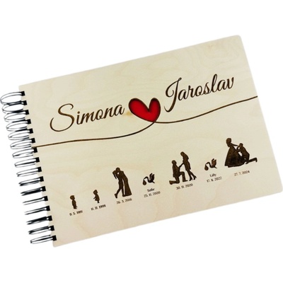 Svatební dřevěné fotoalbum s údaji o vztahu Materiál: Buková překližka, Barva listů: Černá