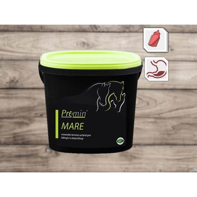 Premin MARE je speciálně vyvinutý doplněk stravy pro klisny v březosti a laktaci. Obsahuje důležité minerály – vápník, fosfor, hořčík, sodík, draslík – a stopové prvky (měď, zinek, selen, mangan, železo) ve vysoce vstřebatelné formě. Dále je obohacen vitamíny A, D3, E...