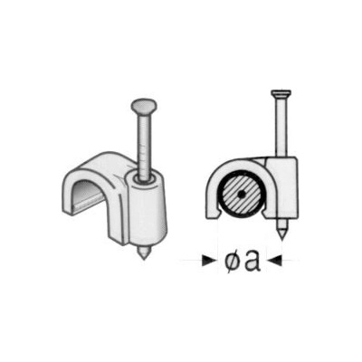 Kabelová příchytka kruhová, vel. 4 - 50 ks v blistrus předmontovaným kaleným zinkovaným hřebem Obrázky jsou pouze ilustrativní.