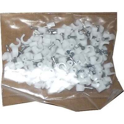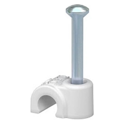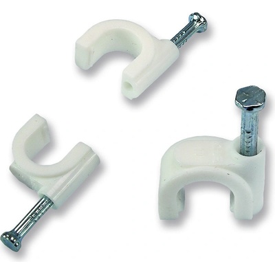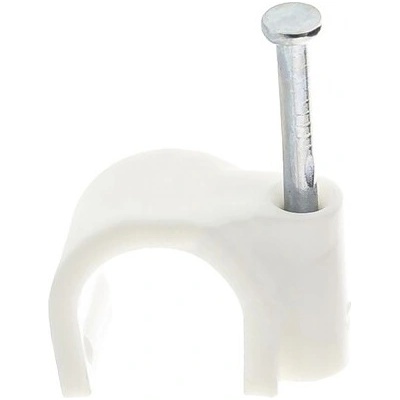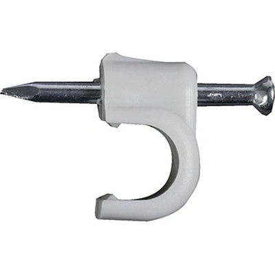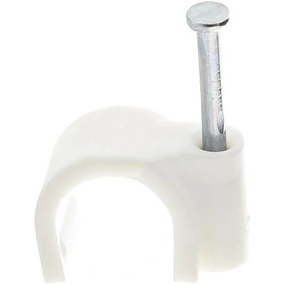 Kabelová příchytka kruhová, vel. 12, bílá - 20 ks v blistrus předmontovaným kaleným zinkovaným hřebem Obrázky jsou pouze ilustrativní.