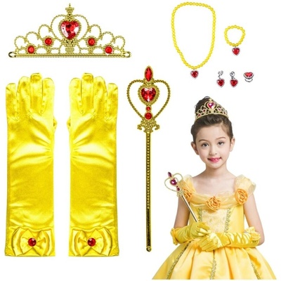 ⭐KIT KORUNKA ŽEZLO RUKAVICE BELLA ŽLUTÉ ZLATO PRINCEZNA KOSTÝM 7 DÍLŮ⭐⭐⭐⭐⭐❔Znátemalou princeznu, která sní o tom, že si zahraje na svou oblíbenou pohádkovou postavu? ❔Chybí...