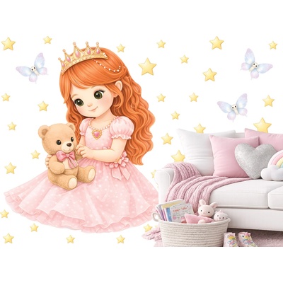 Samolepky na zeď Princezna s medvídkem přinesou do dětského pokoje jemnou pohádkovou atmosféru plnou něhy, klidu a fantazie. Roztomilá princezna v růžových šatech s korunkou a...