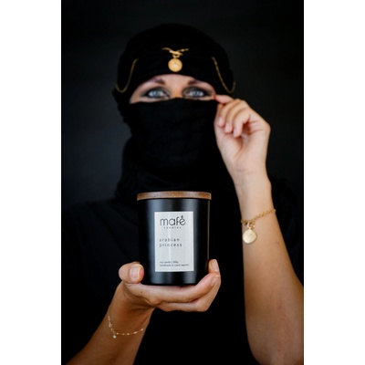 Popis vůně: Poznejte východní pohádku s arabskou princeznou. Svěží zeleň, armoise, citrusy a máta vás nečekaně přenesou do perských zahrad. Jak svíčka dál hoří postupně odkrývá...