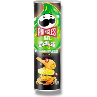 Pálivé chipsy Pringles s příchutí chilli s limetkou. Složení: bramborová kaše, slunečnicový olej, pšeničná mouka, kukuřičná mouka, rýžová mouka, chilli a limetkové koření...