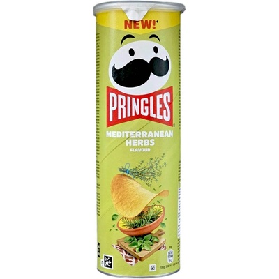 Oblíbené chipsy Pringles s příchutí středomořských bylinek. Složení: sušené brambory, slunečnicový olej, kukuřičná mouka, pšeničná mouka, kořenící směs s příchutí středomořských...