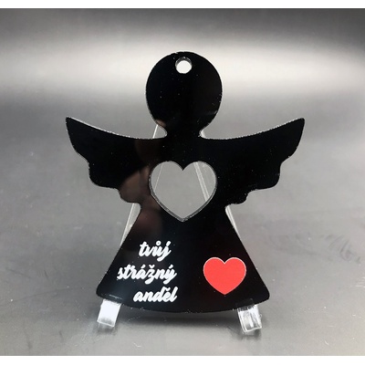 Akrylátová klíčenka anděl - černá lesklá AKRYLÁTOVÁ ČERNÁ LESKLÁ KLÍČENKA s vlastním textem - včetně řetízku a kroužku na klíče - 60x55 mm - exkluzivní materiál + laser...