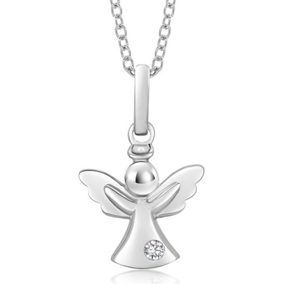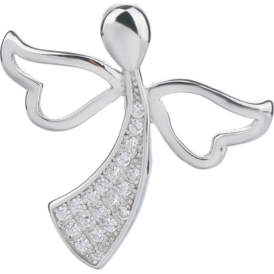 Stříbrný přívěsek anděl se zirkonem čiré barvy. Řetízek není součástí. Váha: 1 g. Rozměr cca: 12 x 19 mm s úchytem.