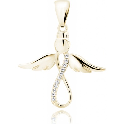 Nádherný pozlacený stříbrný přívěsek na krk ve tvaru anděla Infinity. Přívěsek je velmi elegantní svým minimalismem a třpytivými krystaly.