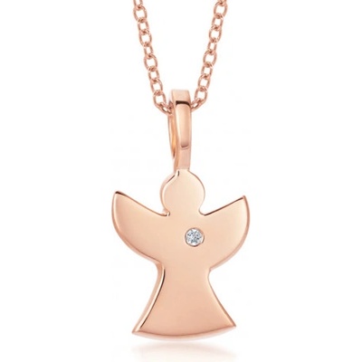 Dámský zlatý přívěsek anděl vyrobený z růžového 14 karátového zlata. Díky rozměrům je vhodný i pro menší slečny. Řetízek není součástí. Rozměr: 5,5 x 13 mm. Váha: 0,2 g.