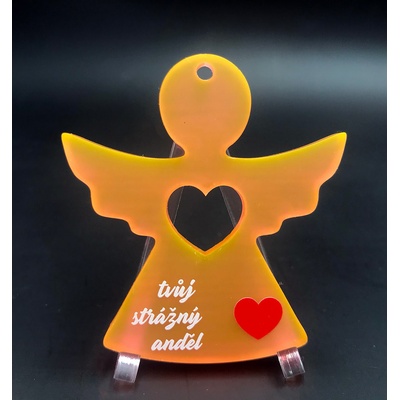 Akrylátová klíčenka anděl - růžová neon AKRYLÁTOVÁ ČERNÁ LESKLÁ KLÍČENKA s vlastním textem - včetně řetízku a kroužku na klíče - 60x55 mm - exkluzivní materiál + laser...