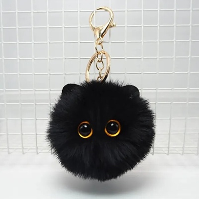 Roztomilý chlupatý přívěsek na klíče – černá kočička. Stylový doplněk i milý dárek pro všechny, kdo milují kočky a hebké věci.