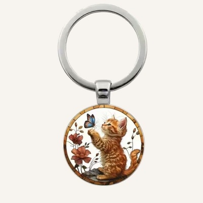 Klíčenka - přívěsek na klíče - s kočkou. Klíčenka koťátko a motýlek se bude skvěle vyjímat na klíčích milovníka koček.