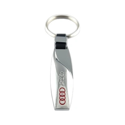 Kvalitní kovový přívěšek na klíče z nerezové oceli s auto emblémem včetně pevného kulatého kroužku na klíče. Logo: Audi Velikost přívěšku bez kroužku: cca 60x15mm Průměr...