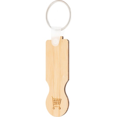 Přívěšek na klíče z bambusové překližky se žetonem do nákupního vozíku.