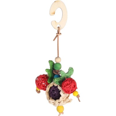 Hračka pro hlodavce FLAMINGO - Nabur Mix závěsná s míčky, ratenm, lufou, kůží a dřevem 9x4x19cm Hračka pro hlodavce Specifikace produktu - hračka pro hlodavce je vyrobená z...
