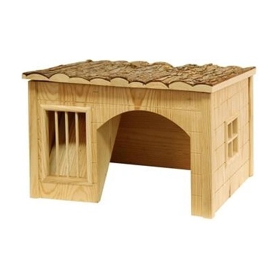 Domeček s integrovanými jeslimi na seno pro drobné hlodavce, morčata, fretky. Domeček má stěny z přírodního masivního dřeva. Jesle jsou integrované do vnitřního prostoru domečku...