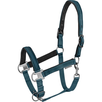 Ohlávka z kolekce Waldhausen AW 2025/26. Nastavitelná ohlávka s umělým beránkem a kamínky v petrolejové barvě. Snadno nastavitelná ohlávka.