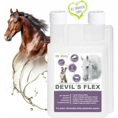Devil’s Flex je extra silné doplňkové krmivo ve formě liquidu pro cílenou podporu koní a psů velkých plemen s výraznými pohybovými obtížemi. Základ tvoří ďáblův dráp...