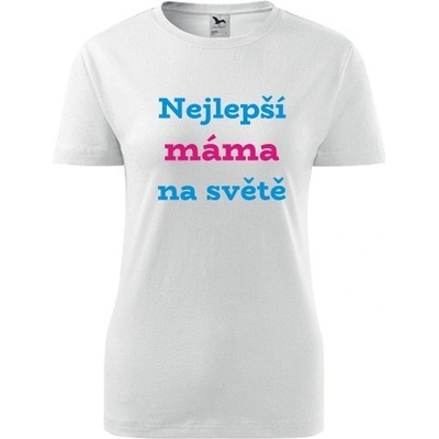 Bílé dámské tričko nejlepší máma na světě. nabízené velikosti jsou S,M,L,XL,XXL. Tričko je zařazeno v sekcích Dárek pro ženu k 39, Dárek pro ženu k 64, Dárek pro ženu k 79,...