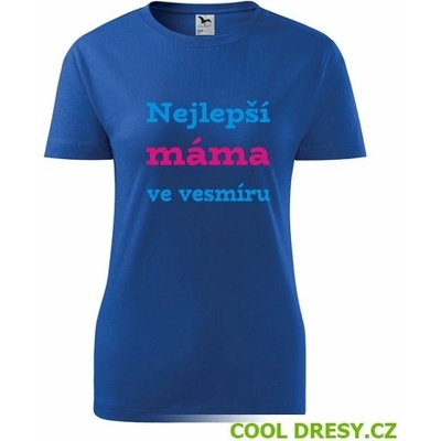 Modré dámské tričko nejlepší máma ve vesmíru. nabízené velikosti jsou S,M,L,XL,XXL. Tričko je zařazeno v sekcích Dámská narozeninová trička, Dárek pro maminku, Dárek pro...