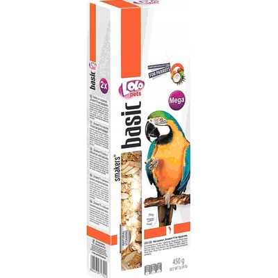 LOLO SMAKERS MEGA 2 klasy ořech-kokos pro velké papoušky 450 g Doplňkové krmivo s ořechem a kokosem pro velké papoušky. Balení: 450 g (2 ks)