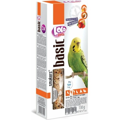 LOLO SMAKERS 3v1 MIX ovoce,med,vejce pro andulky 130 g Doplňkové krmivo s ovocem, vejci a medem pro andulky. Balení: 130 g (3 ks)