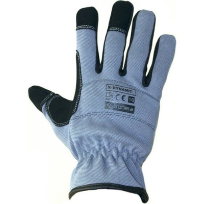 Pracovní rukavice X-Dynamic především pro mechanické práce. Úchopová část je z vysoce kvalitní, měkké a odolné syntetické kůže. Vrchní část je z elastické šedé spandexové tkaniny. Na nejvíce exponovaných místech další zesílení. Tyto šedo-černé rukavice splňují normy CE...