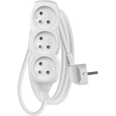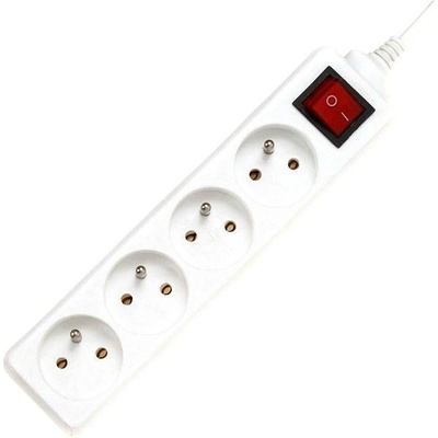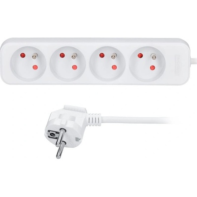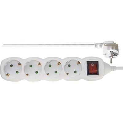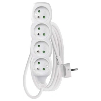 Prodlužovací kabel 3 m, 4 zásuvky, s vypínačem, bílý, PVC, 1 mm2.