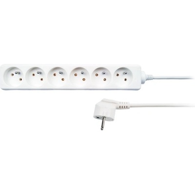 Prodlužovací přívod Solight Technické parametry: - počet zásuvek: 6 - průřez vodičů: 3 x 1mm2 - typ kabelu: H05VV-F3 - lomená vidlice - barva: bílá - délka: 2m - 230V/10A - s...