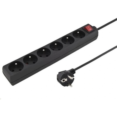 PremiumCord Prodlužovací přívod 230V 5m 6 zásuvek + vypínač, černý •Počet zásuvek: 6 •Vypínač: ano •Maximální napětí: 250 V •Maximální proud: 10A •Maximální zátěž: 2300W...
