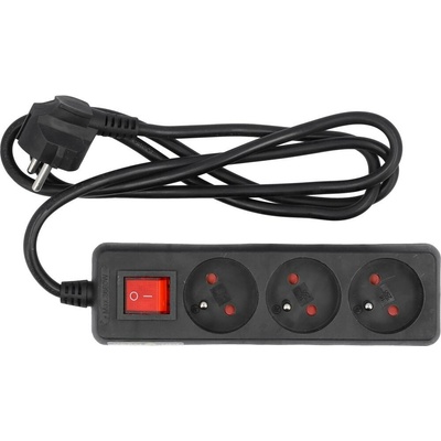 Klasický prodlužovací kabel uzemněný. Plastové pouzdro zásuvky s vypínačem. Černá barva. Počet zásuvek: 3 s uzemněním Délka: 1,5 m Vypínač: ANO Max. proud: 16 A Napětí: 230 V...