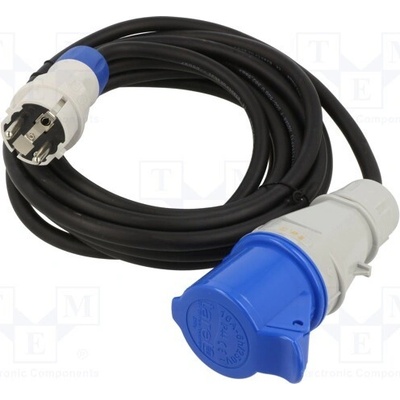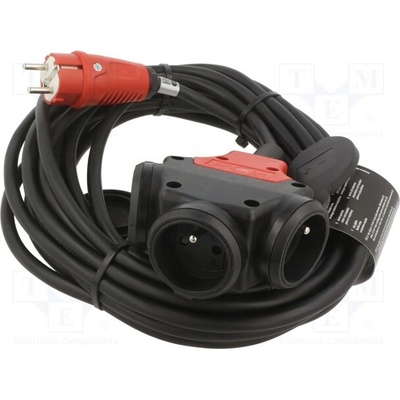 Prodlužovací síťový kabel; Zásuvky: 1; guma; černá; 3x2,5mm2; 5m