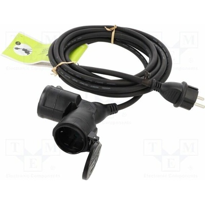 Prodlužovací síťový kabel; 3G1,5mm2; 5m; guma; černá; Počet zás: 2