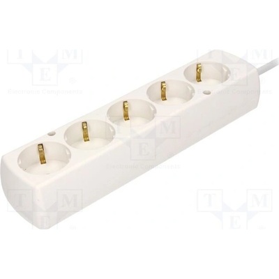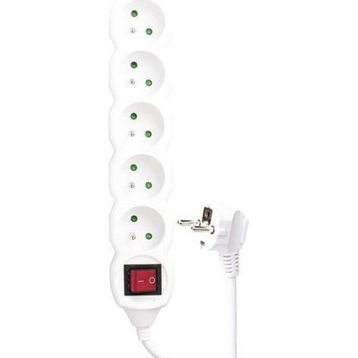 Prodlužovací síťový kabel; 3x1mm2; 5m; PVC; bílá; Počet zás: 5; 10A