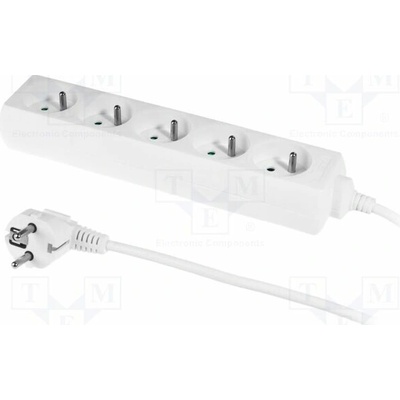 Prodlužovací přívod 5x2p+Z, 250V, 3x1,5mm, 16A bílá 5m Kód produktu: 11.369.641 EAN: 5900280932730