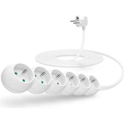 Prodlužovací síťový kabel; 3x1mm2; 5m; PVC; bílá; Počet zás: 6; 10A