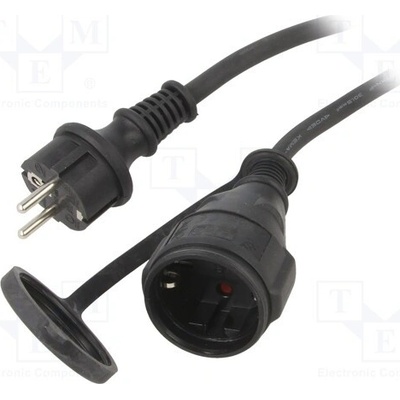 Prodlužovací síťový kabel; Zásuvky: 1; PVC; černá; 3x1,5mm2; 5m