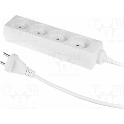 Prodlužovací síťový kabel; 3x1,5mm2; Schuko; Zásuvky: 4; PVC; bílá