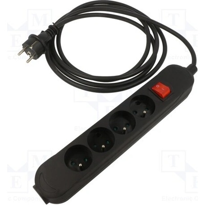 Prodlužovací síťový kabel; 2x1mm2; Schuko; Zásuvky: 4; PVC; černá