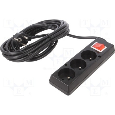 Prodlužovací síťový kabel; 3x1,5mm2; Zásuvky: 3; PVC; černá; 5m
