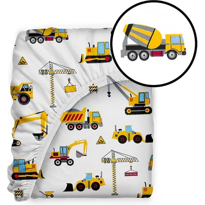 Dopřejte svým dětem pohodlný spánek s hravým bavlněným prostěradlem s motivem stavebních strojů, které je perfektním doplňkem do dětského pokoje malých nadšenců do bagrů, jeřábů...