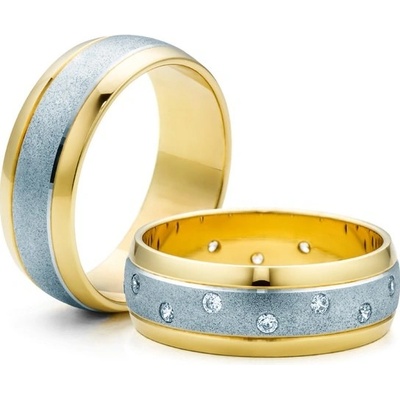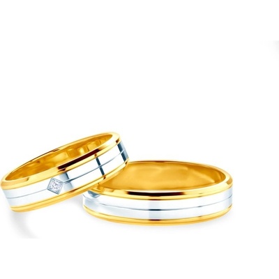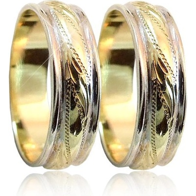 Snubní prstýnky z bílého a žlutého zlata zdobené jemnou rytinkou. Snubní prsteny jsou zaobleného tvaru, vyrobeny jsou v kombinaci žlutého a bílého zlata ryzosti...
