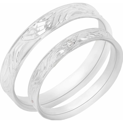 elegantní svatební obroučky jsou vhodné pro snoubence, kteří vyznávají klasický a stylový design. dámskému prstenu dodává jiskru malý diamant. punc osobitosti jim dodá...