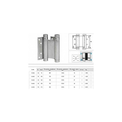 Nerezový dvoustranný pružinový samozavírací pant 2ks pro dvoustranné samozavírací dveře, délka pantu 125 mm Materiál: Nerez AISI 304, Povrchová úprava: Brus, Hmotnost brány Gmax/Goptimal (kg): 27, Rozměry: D: 18, d: 6,5, h: 124, h1: 90, h2: 44, k: 10,7, s: 9, t:...